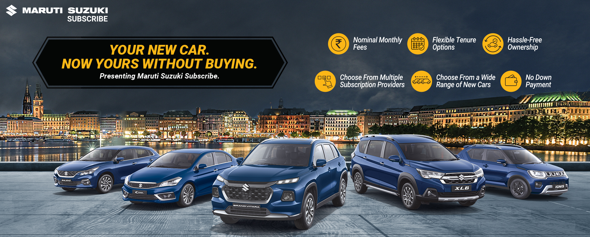 Maruti Suzuki Subscribe enables all customers to enjoy driving their preferred Maruti Suzuki cars without having to deal with all the financial responsibilities that come with owning a car.All you need to do is opt for a monthly subscription plan at a fixed monthly fee, which includes the routine maintenance and insurance costs, and choose a flexible tenure. At Indus Motors in, , Palakkad, all Hatchback, Sedan, SUV, the MUV models line-up includes Baleno, Invicto, EVitara, Jimny, Ciaz, Ignis, Fronx, Grand Vitara, XL6. Here, you will enjoy Maruti Suzuki Subscribe benefits such as: